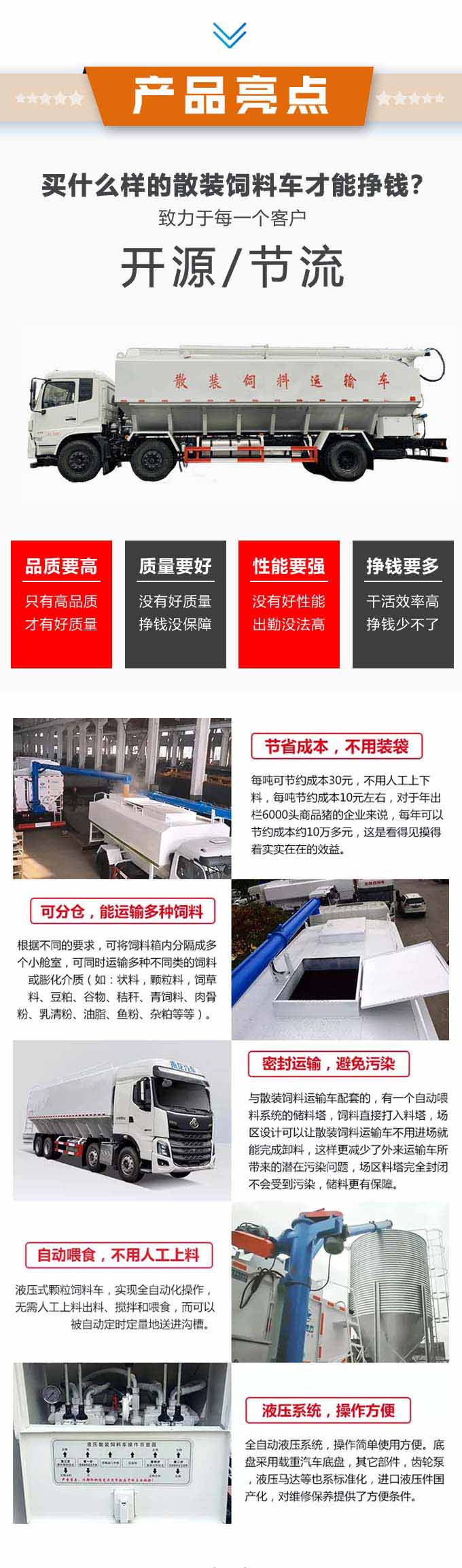 順序和速度,倉室數量可根據用戶需求增減。絞龍最大舉升仰角60-80度。頂部絞龍的舉升旋轉均為液壓控制,