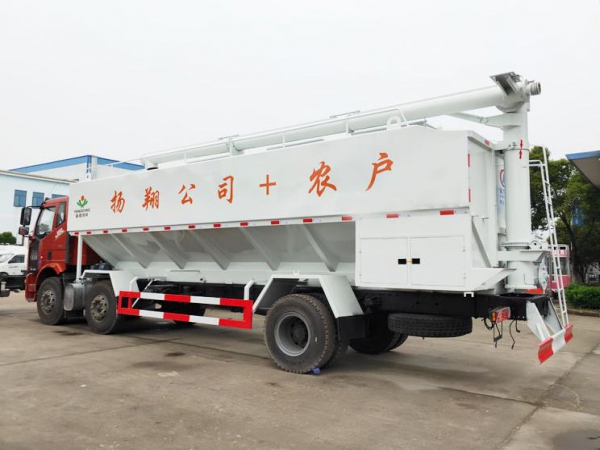 同時它也可用來運輸某些無腐蝕性粉粒狀原料,如制藥廠粉料和糧庫周轉。散裝飼料車的飼料罐架設在卡車的底盤上,