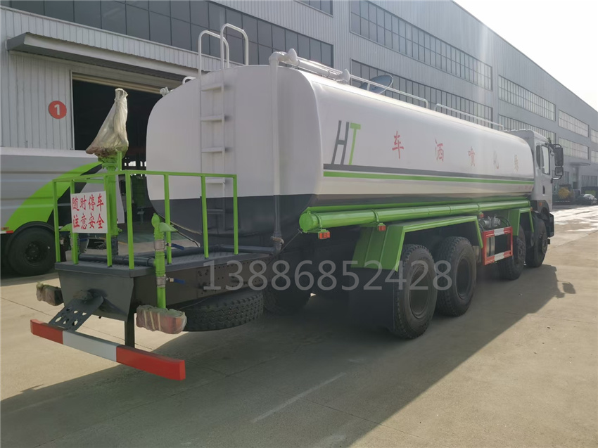 東風(fēng)前四后八保溫送水車_保溫運(yùn)水車_熱水車哪里買_配置:新款工藝罐體,全車螺栓鉚接,標(biāo)準(zhǔn)件生產(chǎn),罐體材質(zhì)采用4mm厚度優(yōu)質(zhì)武鋼碳鋼材料,罐體一次性卷壓成型,埋弧焊焊接,罐內(nèi)隔板具有防波作用,以減輕汽車行駛時(shí)罐體液體沖擊,罐體及整車外形尺寸按照公告。帶大功率灑水泵,泵可自吸自排,整車前沖、后灑、側(cè)噴、帶65消防接口,后平臺帶綠化灑水炮,灑水炮可旋轉(zhuǎn),可連續(xù)調(diào)成直沖狀、大雨、小雨、毛毛雨;前封頭帶水位計(jì),后平臺主管路帶1寸澆花接口,后爬梯。平臺后部帶小安全告知牌:“隨時(shí)停車,注意安全”,帶兩根水管及陰陽端。罐體兩側(cè)噴“灑、綠化灑”字樣,貼反光標(biāo)示。垂直吸程:8米,灑水寬度:20米,灑水炮射程:28-35米。