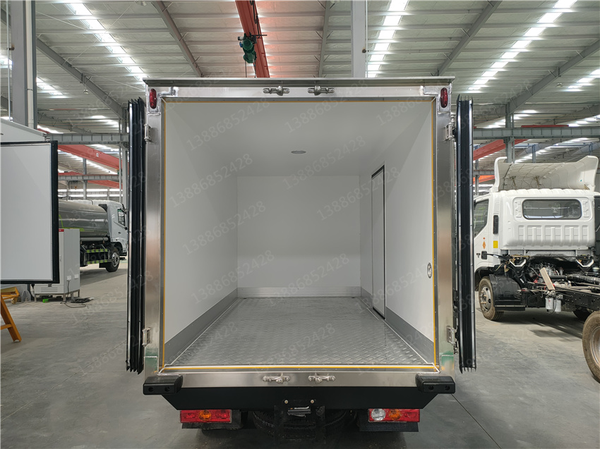 采用國際最先進的1200噸真空吸附一體成型制造。通用三明治斷橋隔熱工藝,是由鍍鋅管龍骨架加上中間8CM保溫環保材質擠塑板填充、防水木板用螺絲連接,外壁板選用國內優質的機制1.8mm厚度玻璃鋼,內壁選用1.2mm厚度熱縮板,廂體厚度80mm,門框厚度80mm,底板上面整體鋪鋁花紋板,高強度粘合劑,箱體真空吸附8小時以上,確保箱體一次成型,杜絕箱體起包,脫膠。廂體周邊3mm加厚型鋁合金包邊,不銹鋼包角,304不銹鋼門鎖,不銹鋼一體式門框,加大型防碰撞膠皮,廂內LED節能照明燈?蛇x-5°至-18°制冷機組.