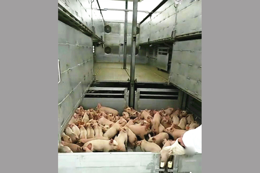 畜禽運輸車是我公司在借鑒國內(nèi)外產(chǎn)品的基礎上,結(jié)合用戶實際需求新研發(fā)的一款運輸仔豬、生豬、雞苗等畜禽的專用功能較強的運輸車輛,是我公司傾力打造的一款專門面向活禽、牲畜運輸市場的一款高端運輸車,該款運輸車旨在增強活禽、牲畜在運輸過程中的舒適度、減少死亡率,提高運輸效率,該車配備設施完善、自動化程度高。廂式畜禽運輸車可用于成品豬、生豬、豬仔、雞苗跨省運輸,全程無泄漏,有糞液收集系統(tǒng)箱體采用全鋁合金型材制作,質(zhì)量輕、抗腐蝕性強。箱體中層安裝保溫隔板,頂部采用玻璃鋼,有效避免高溫傳導,控制箱體內(nèi)部溫度。車廂內(nèi)部采用全液壓可調(diào)整分層結(jié)構,二層、三層、四層16欄(根據(jù)需求選擇)飲水系統(tǒng),側(cè)推拉通風滑窗,帶電子排風扇,視頻監(jiān)控,溫度顯示監(jiān)控,中間有隔欄,每層約承重300頭仔豬的重量。車廂后部選裝垂直液壓升降尾板,更實用!