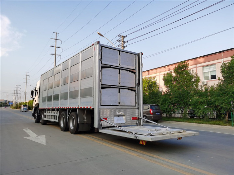 1.廂體鋁合金制作:地面防滑,內(nèi)部地板以及頂部天花板升降可翻起,方便沖洗;廂體型材采用高強度鋁合金型材,地板防滑花紋板,翻板厚度40mm,頂板為蜂窩保溫板,底盤副大梁為熱鍍鋅鋼材質(zhì);