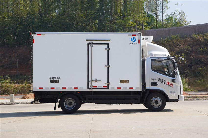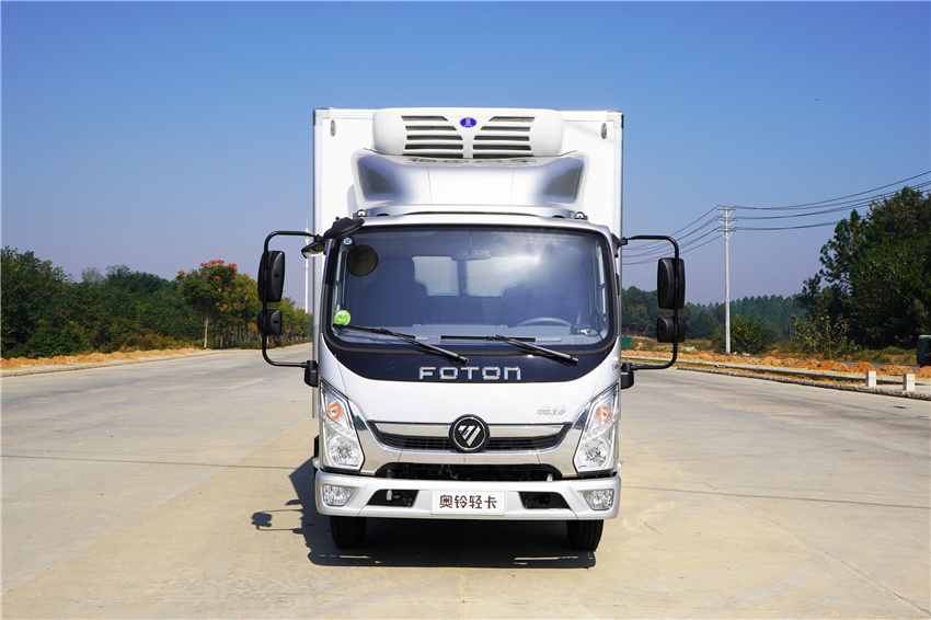 奧鈴速運冷藏車采用福田康明斯131/150/156馬力(F2.8NS6B131/F2.8NS6B150/F2.8NS6B156)發動機,采埃付5擋變速箱,NPR沖壓后橋(帶制動襯片磨損報警),7.00R16輪胎,斷氣剎、單排翻轉、車載無線服務控制器(T-BOX)、ABS、離合助力、動轉,