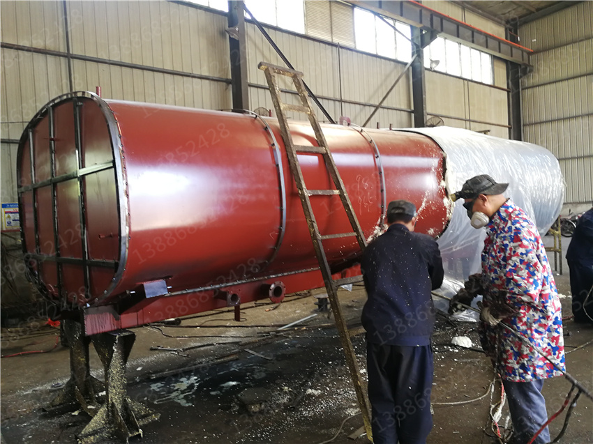 3. 保層溫的制作是在水罐外部另外焊接10mm厚的支撐骨架,然后用保溫材料將骨架內部填充滿,**在骨架外蒙上一層外皮。 保溫層外表鐵皮采用8mm厚高強度耐磨板,可選擇使用不銹鋼分鏡面8K或磨砂板