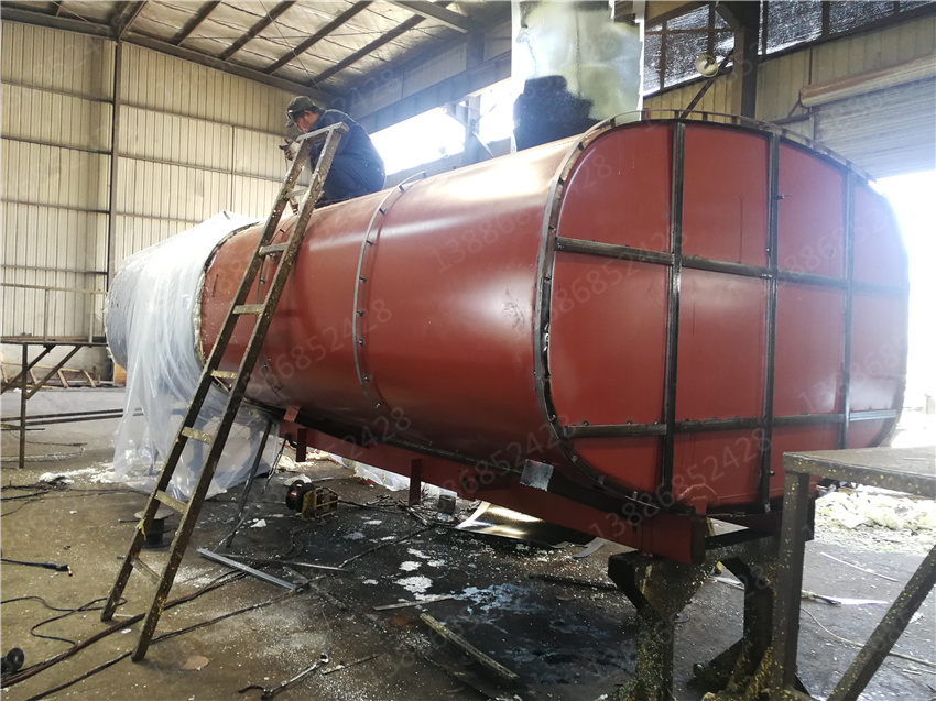 3. 保層溫的制作是在水罐外部另外焊接10mm厚的支撐骨架,然后用保溫材料將骨架內部填充滿,**在骨架外蒙上一層外皮。 保溫層外表鐵皮采用8mm厚高強度耐磨板,可選擇使用不銹鋼分鏡面8K或磨砂板