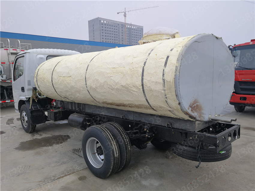保溫熱水車與普通灑水車的區別就是在水罐外面加了一道保溫層。保溫層的制作是在水罐外面焊接5公分的支撐骨架,然后用保溫材料填充,再在保溫層外面外包一層碳鋼板或者不銹鋼板焊接制作