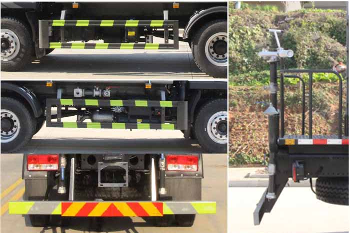該車主要用于城鄉(xiāng)園林綠化噴灑作業(yè);主要裝置為水罐及噴灑裝置;罐體總?cè)萘?/span>:11.66立方米;罐體有效容積:11.1立方米;罐體外形尺寸(長×長軸×短軸)(mm):4200×2300×1450.運(yùn)輸介質(zhì):水,密度1000千克/立方米;ABS型號(hào)為CM4XL-4S/4M,生產(chǎn)廠家為廣州瑞立科密汽車電子股份有限公司.側(cè)、后防護(hù)材料均為:Q235碳鋼,連接方式均為:螺栓連接;后部防護(hù)截面尺寸(mm):120×50,后部防護(hù)離地高度(mm):480.隨底盤選裝限速裝置,限速88km/h.選裝前部電子水炮裝置樣式,選裝前部不帶電子水炮;當(dāng)前部帶電子水炮時(shí),前伸500mm,整車長度為8250mm,8000mm;當(dāng)前部不帶電子水炮時(shí),前伸為0mm,整車長度為7750mm,7500mm.僅采用底盤3950mm軸距改裝.隨底盤選裝新款前格柵,新款保險(xiǎn)杠,新造型前霧燈.選裝油箱電瓶安裝位置,選裝車輛前部鴨嘴裝置. |