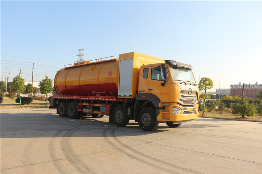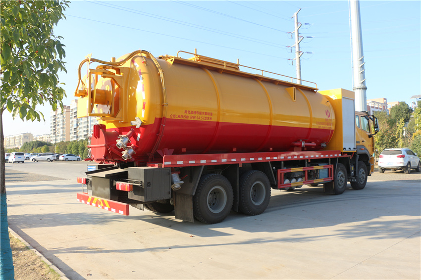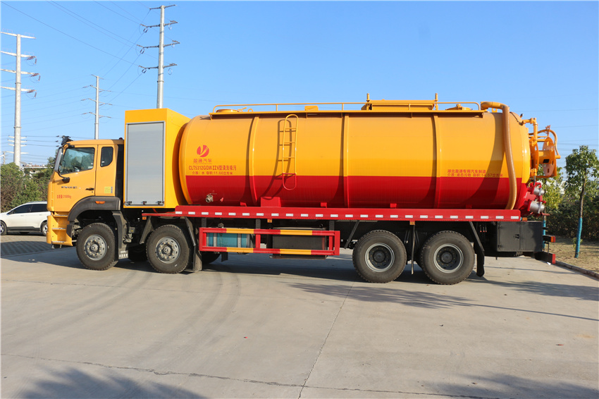 重汽35方清洗吸污車,豪沃35方疏通吸污車,管道疏通車,市政下水道清理車,高壓清洗吸污車,該車專用裝置主要為污水罐和清水罐,用于下水道吸污及疏通。隨底盤選裝駕駛室;罐體尺寸(直段長×直徑)(mm):7100×2350,其中罐體前端為清水罐(直段長3150mm);后端為污水罐(直段長3950mm)。兩罐獨立,且不能同時滿載。清洗功能時用清水罐,吸污功能時用污水罐。污水罐總容量14.57立方米,污水罐有效容積13.88立方米,介質:液態污物,密度:800千克/立方米;清水罐總容量11.66立方米,清水罐有效容積11.1立方米,介質:水,密度:1000千克/立方米。采用軸距(mm):1800+4600+1350,1800+4575+1400;側/后防護材料均為:Q235碳鋼,連接方式均為:螺栓連接,后部防護截面尺寸(mm):200×60,后部防護離地高度(mm):480;ABS系統型號為446 004 6300,生產企業為威伯科汽車控制系統(中國)有限公司。選裝EBS,EBS系統控制器生產企業:威伯科汽車控制系統(中國)有限公司,型號:EBS3。選裝罐體頂部護欄樣式,選裝側面清洗管,選裝后罐口液壓開啟樣式,選裝后部閥門,選裝后部清洗管卷盤樣式。選裝前部不帶卷簾門保護箱.選裝尿素箱位置,選裝油浴式空濾器,,選裝左置電瓶箱,選裝大油箱,選裝雙腔大油箱,選裝消聲器及位置,選裝踏步,選裝前拖鉤。 |