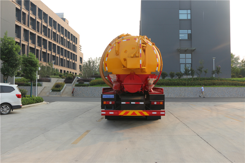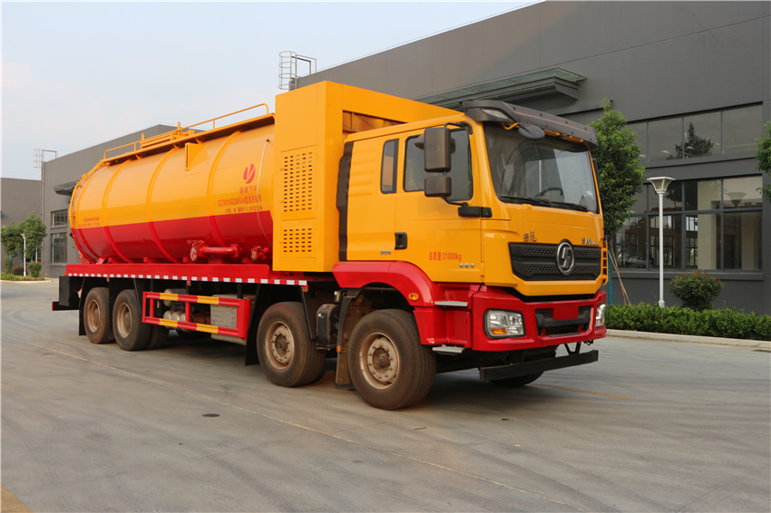 陜汽35方清洗吸污車,德龍35方疏通吸污車,管道疏通車,市政下水道清理車,高壓清洗吸污車,該車用于清洗吸污,主要專用裝置為罐體及清洗吸污裝置;罐體尺寸為(直段長×直徑)(mm):7100×2350(前部3150mm為清水罐,后部3950mm為污水罐);污水罐總容量14.57立方米,污水罐有效容積13.88立方米,介質:液態污物,密度:800千克/立方米;清水罐總容量11.66立方米,清水罐有效容積11.1立方米,介質:水,密度:1000千克/立方米,兩罐獨立,且不能同時滿載,清洗功能時用清水罐,吸污功能時用污水罐;隨底盤選裝駕駛室,選裝罐體側部樣式及后部樣式;卸料方式為舉升后卸式;側、后防護材料均為Q235,連接方式:螺栓連接。后防護截面尺寸(mm)200×60,下邊緣離地高480mm;ABS系統生產廠家及型號分別為:西安正昌電子股份有限公司(型號:ZQFB-V),廣州瑞立科密汽車電子股份有限公司(CM4XL-4S/4M)。選裝前部不帶卷簾門保護箱。 |
